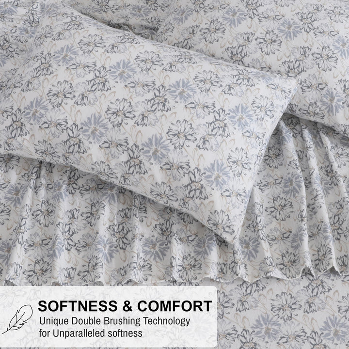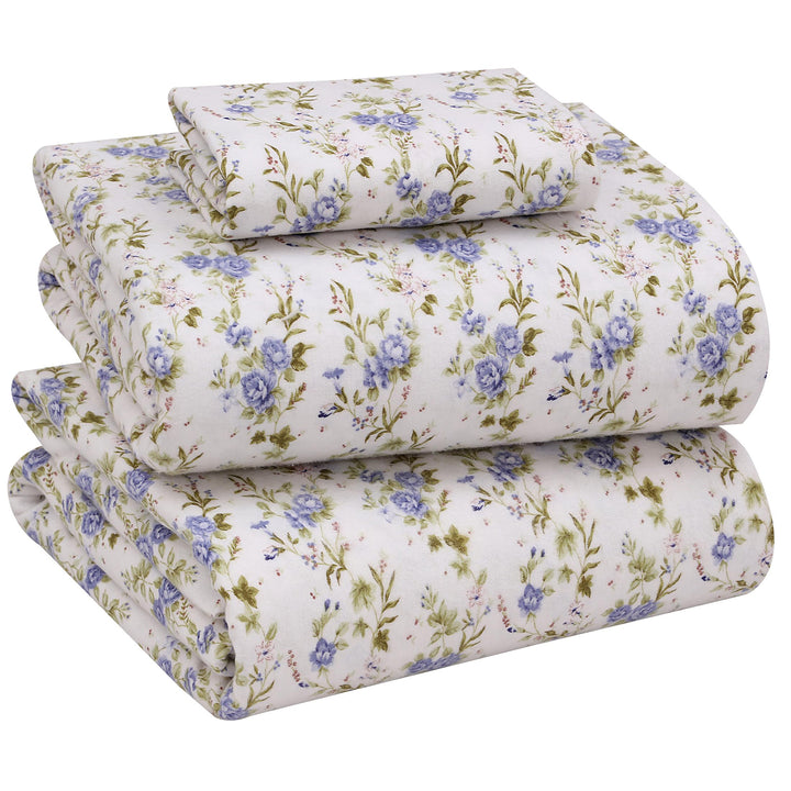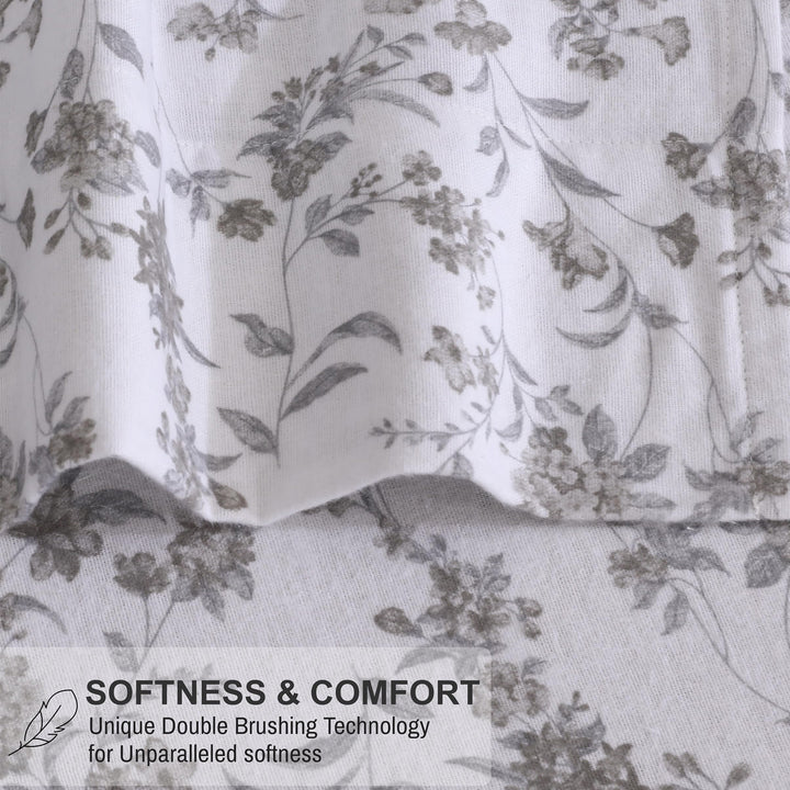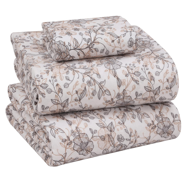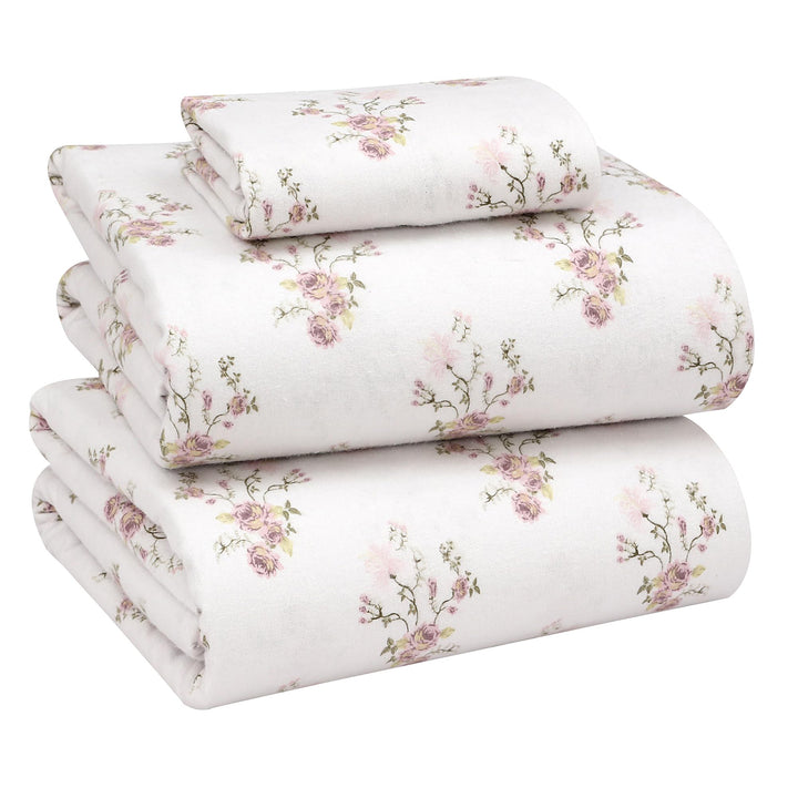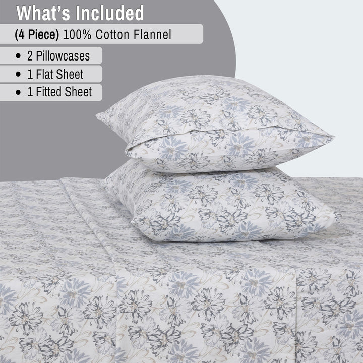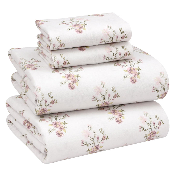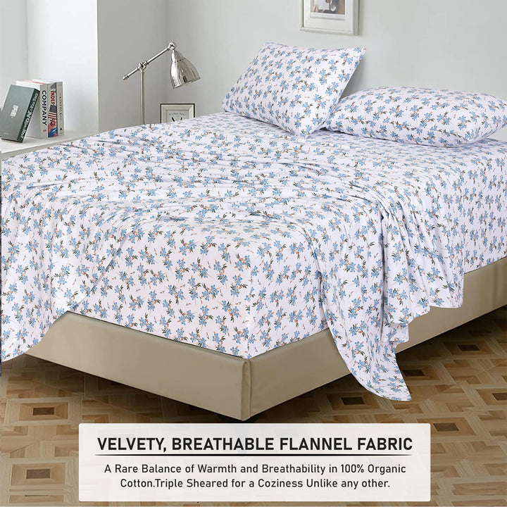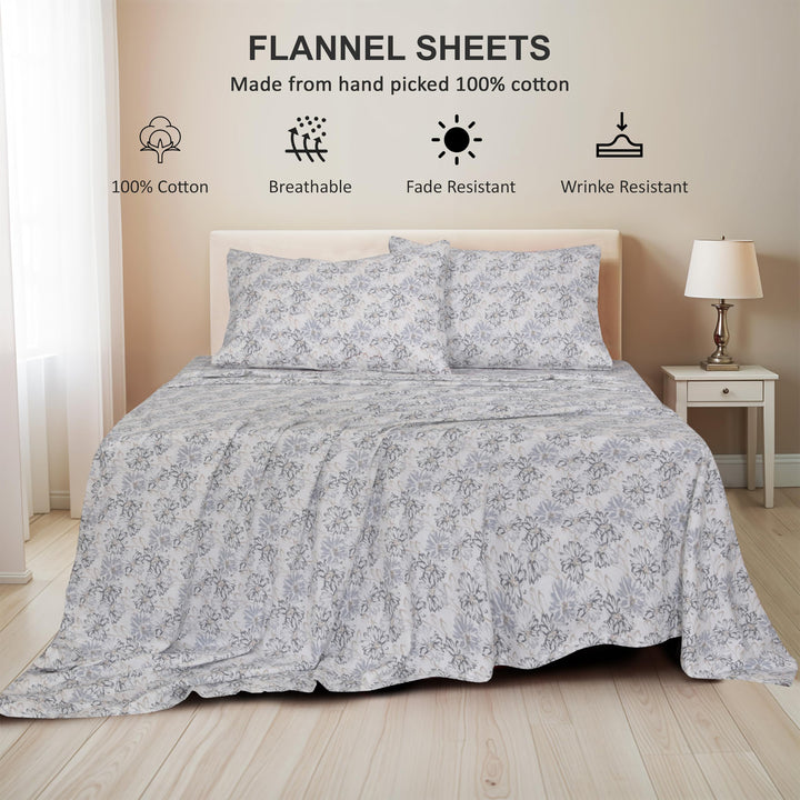 Ruvanti Floral Flannel Sheets Set โ 100% Cotton Double Brushed Bed Sheets, Ultra Soft, Warm & Cozy, Deep Pockets, All Season Comfort, 4 Piece Set