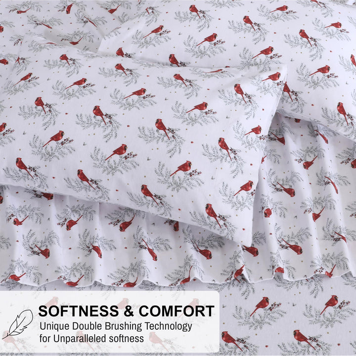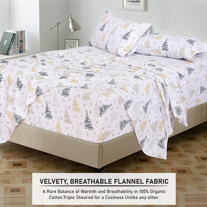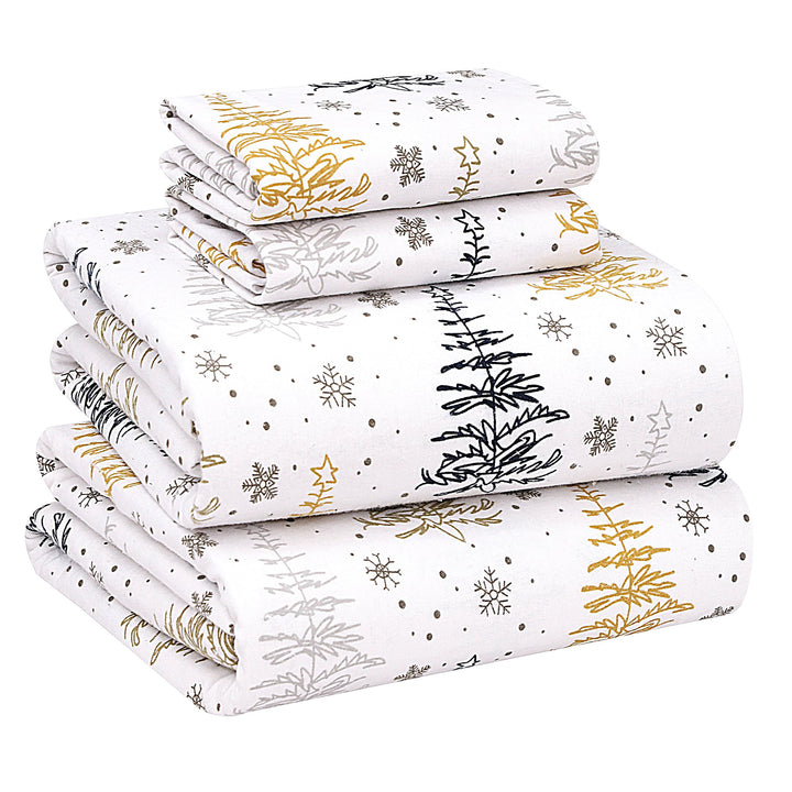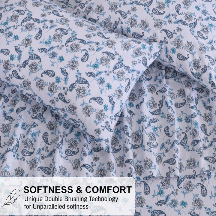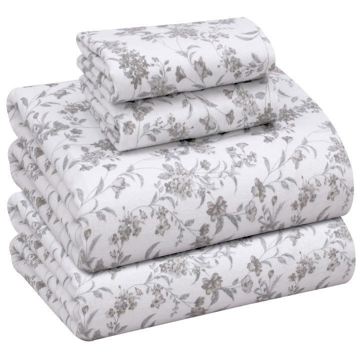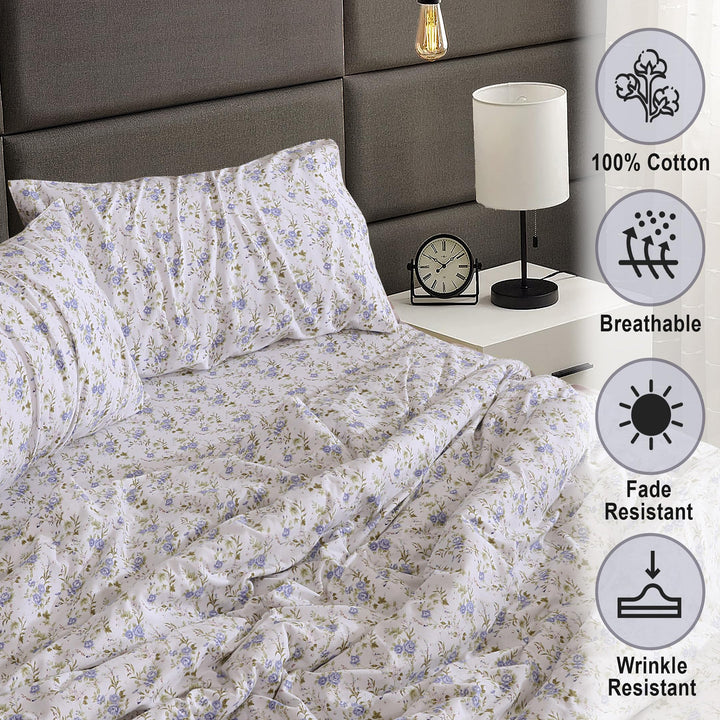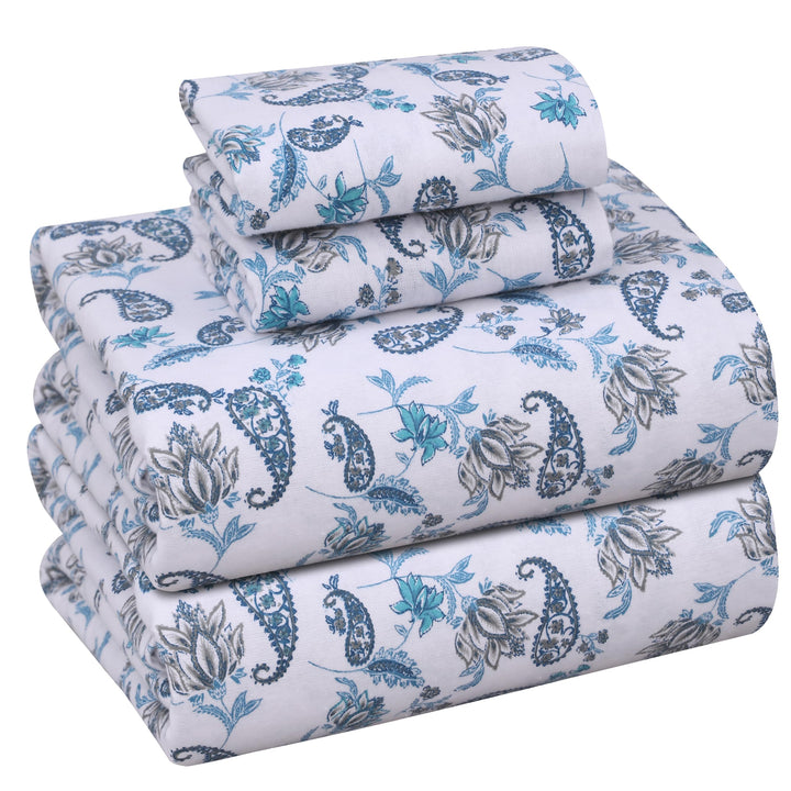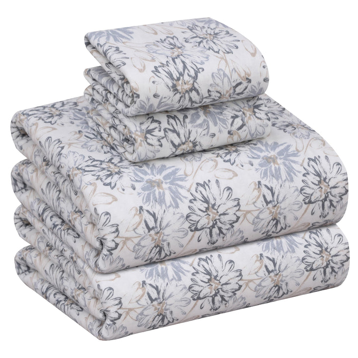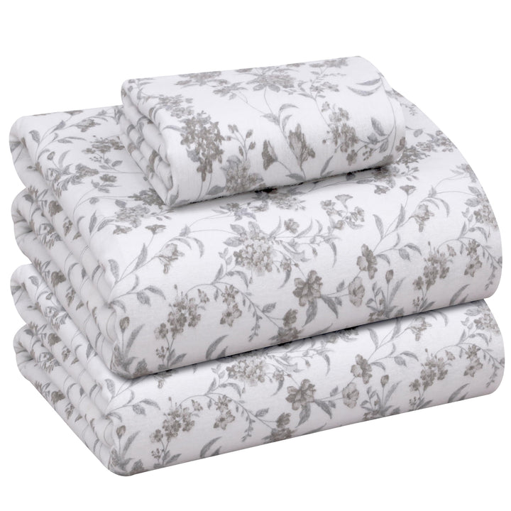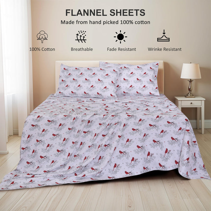 Ruvanti Floral Flannel Sheets Set โ 100% Cotton Double Brushed Bed Sheets, Ultra Soft, Warm & Cozy, Deep Pockets, All Season Comfort, 4 Piece Set