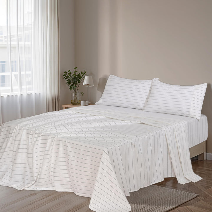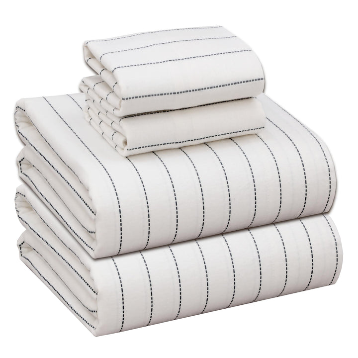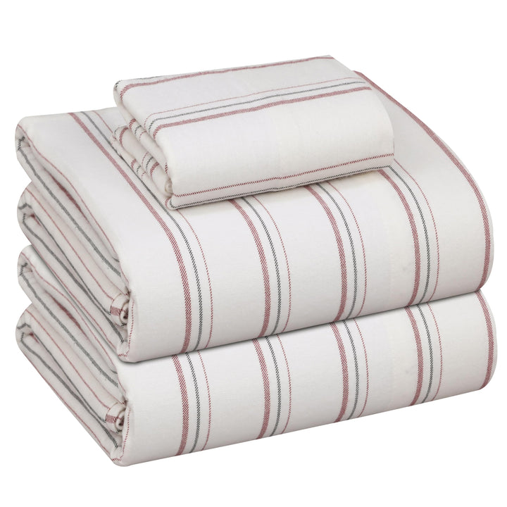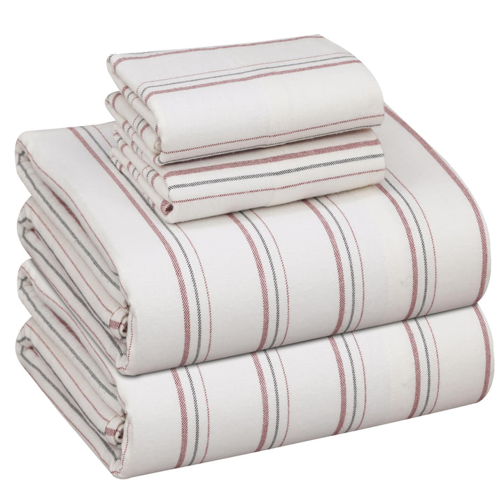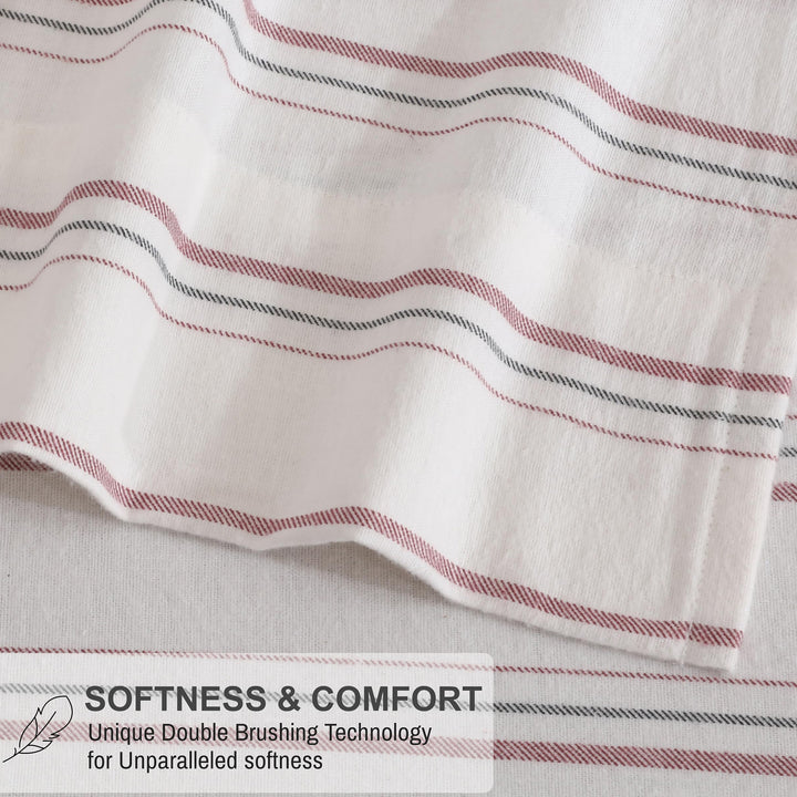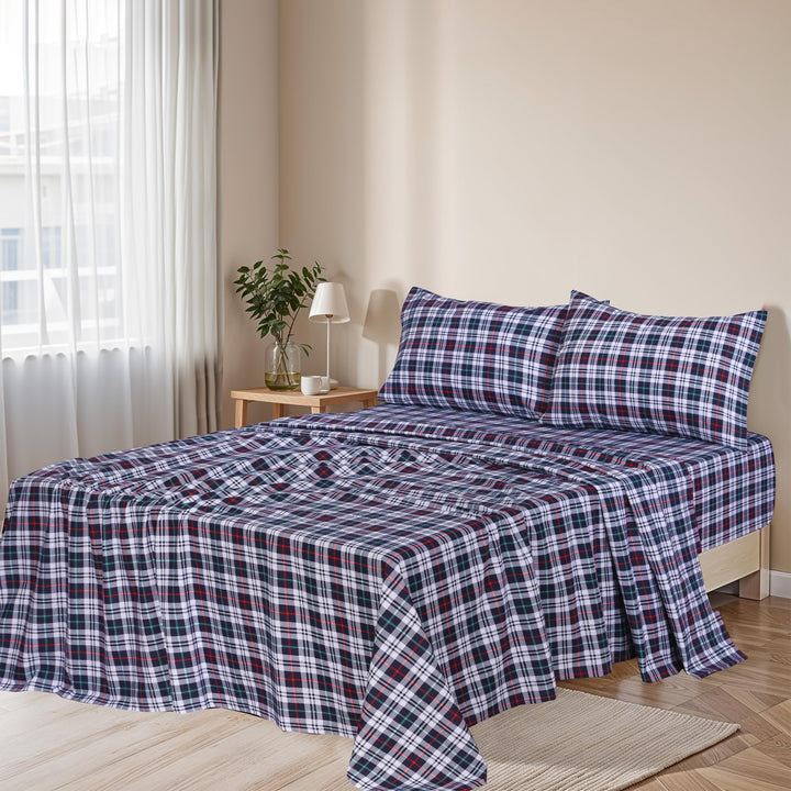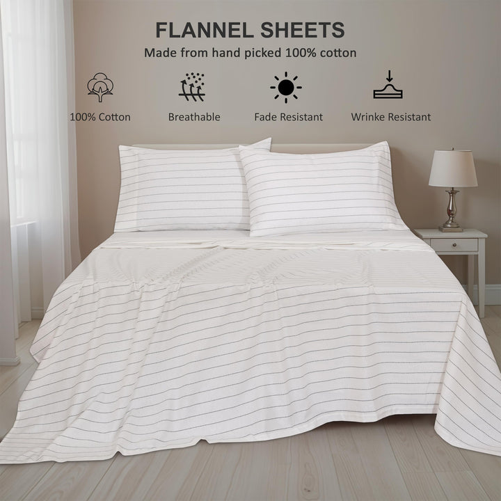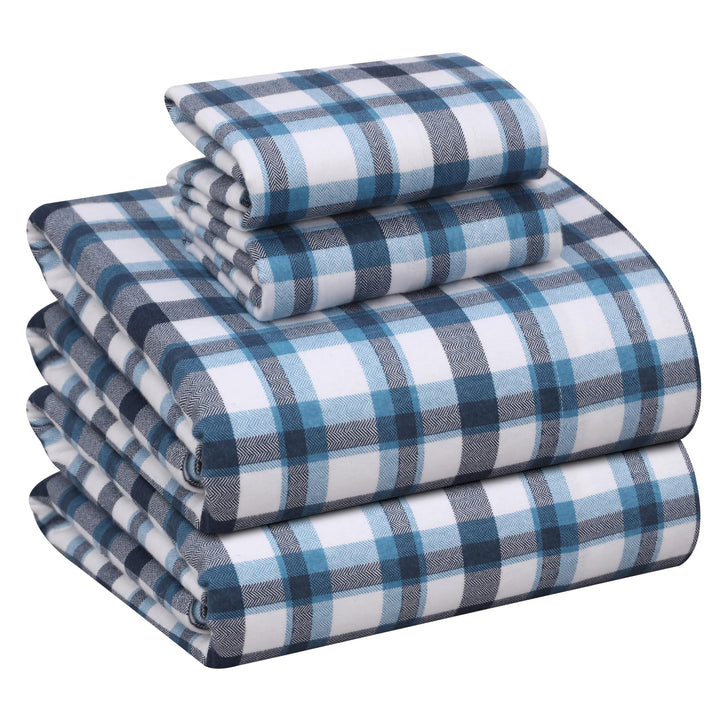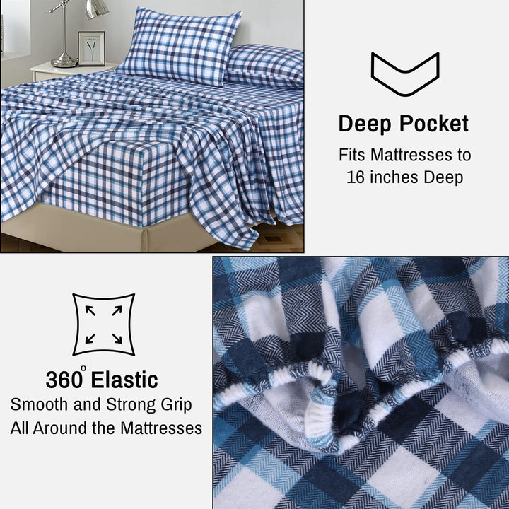 Ruvanti Stripe & Plaid 100% Cotton Flannel Sheets Set – Ultra Soft, Warm & Breathable Bed Sheets, Deep Pocket, Double Brushed All-Season Cozy Bedding, 4 Piece Set