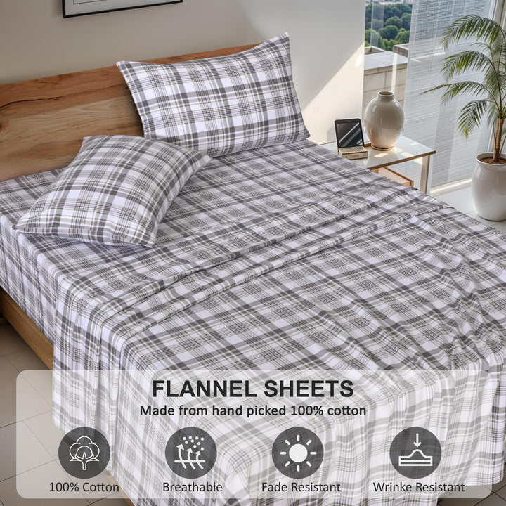 🩶 Ruvanti 100% Cotton Flannel Sheets – Ultra Soft, All-Season Cozy Bedding