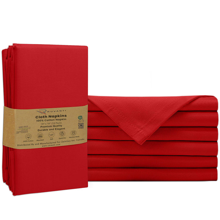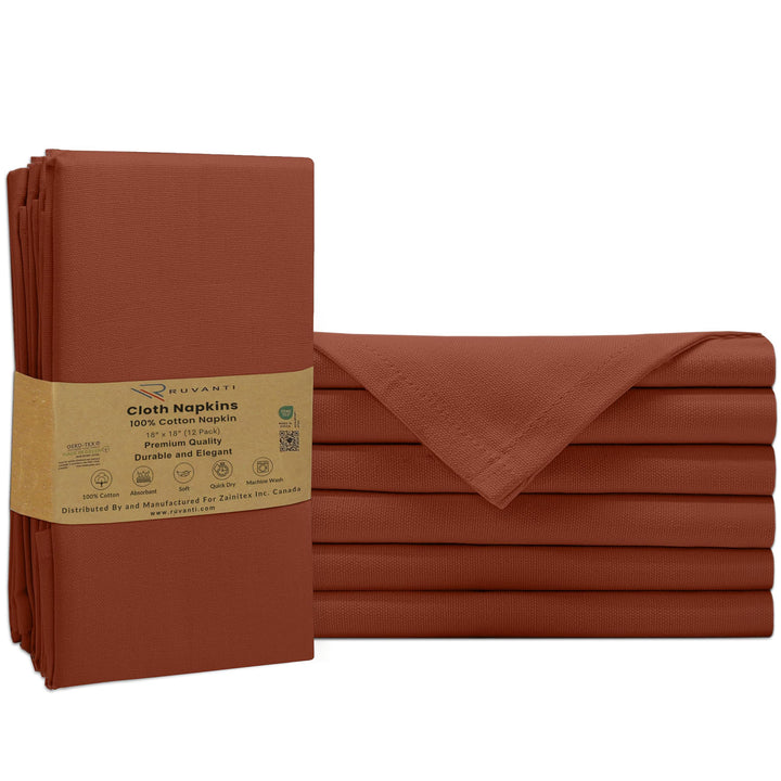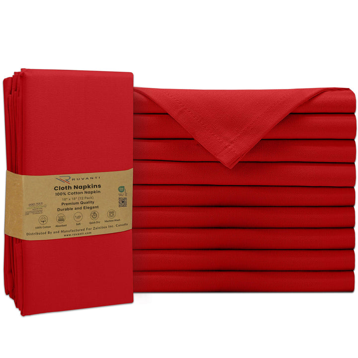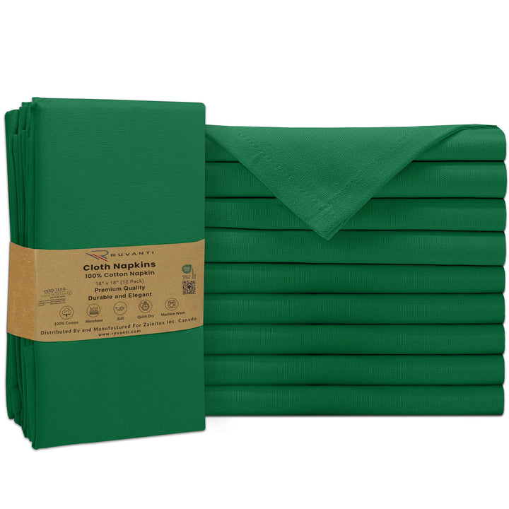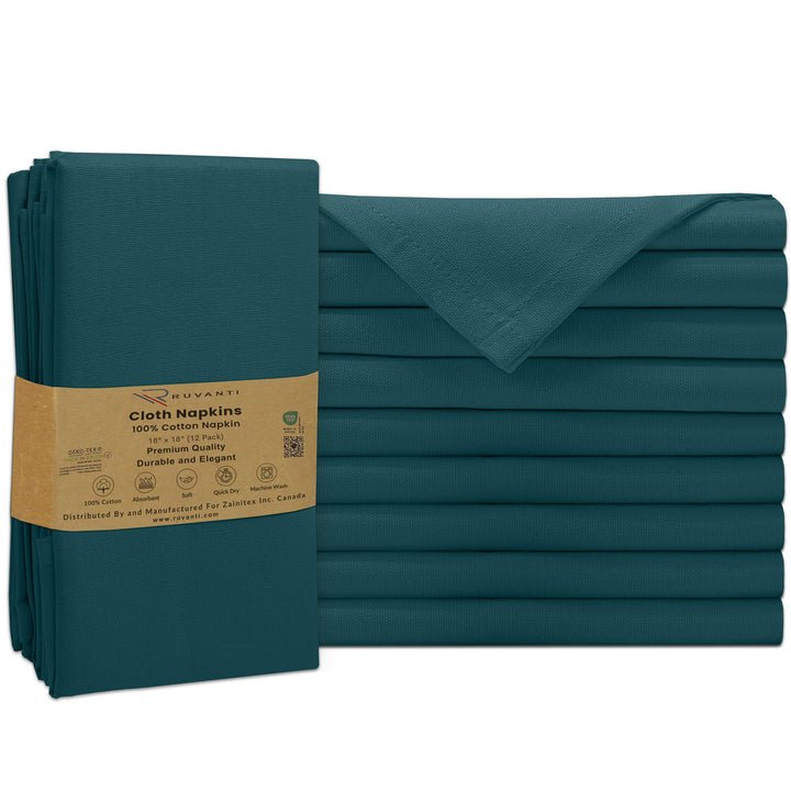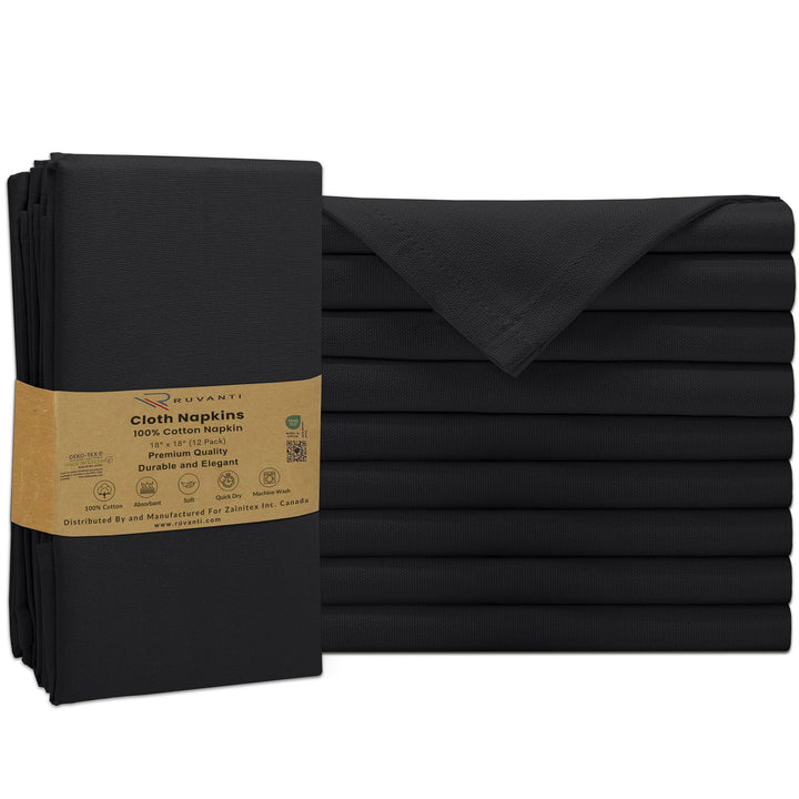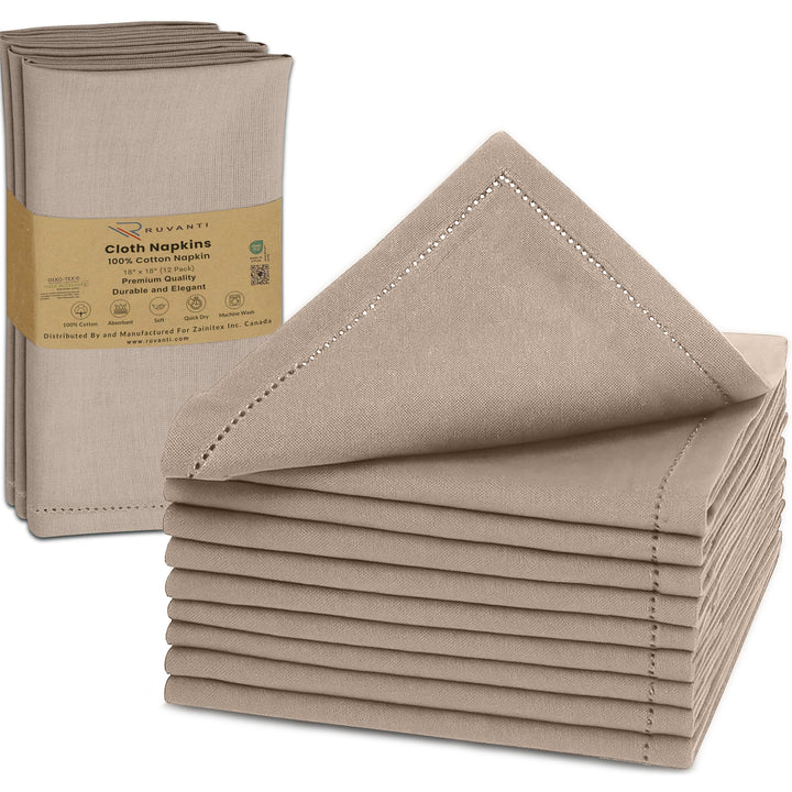 Ruvanti Cloth Napkins - 100% Cotton Dinner Napkins, Hem Stitched Corners, 18x18 Inch, 12 Pack - Soft, Absorbent, Durable, Reusable, Wrinkle Resistant for Formal Dining & Everyday Use